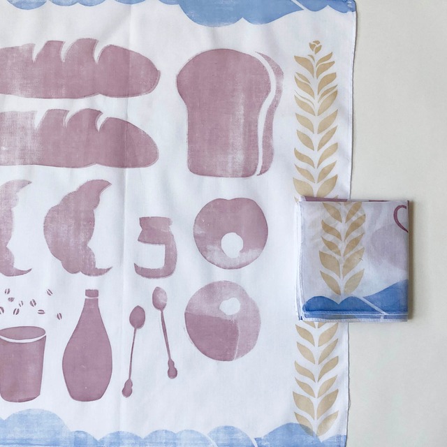 パンとその周りをモチーフにしたハンカチです。 透ける素材もきれいなローン80番を使用しています。 サイズ;45cm×45cm 素材;綿100% プリントは定着処理をしているため、お洗濯による色移りはありません。 通常のお洗濯が可能です。 画像は実物に近くなるように色調整をしていますが、 お使いになるブラウザによって色味が変わる場合があります。 ご了承ください。