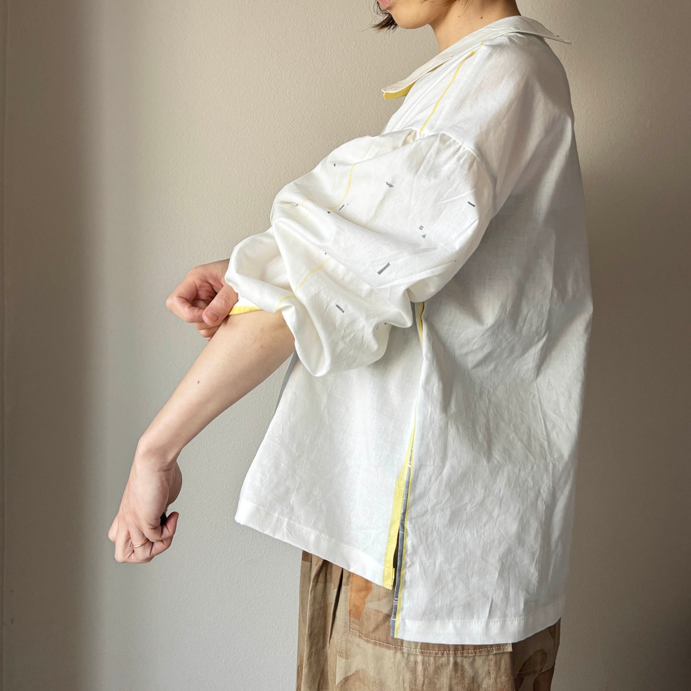 ポイントで見頃脇と袖口、衿裏に黄色が入っていて