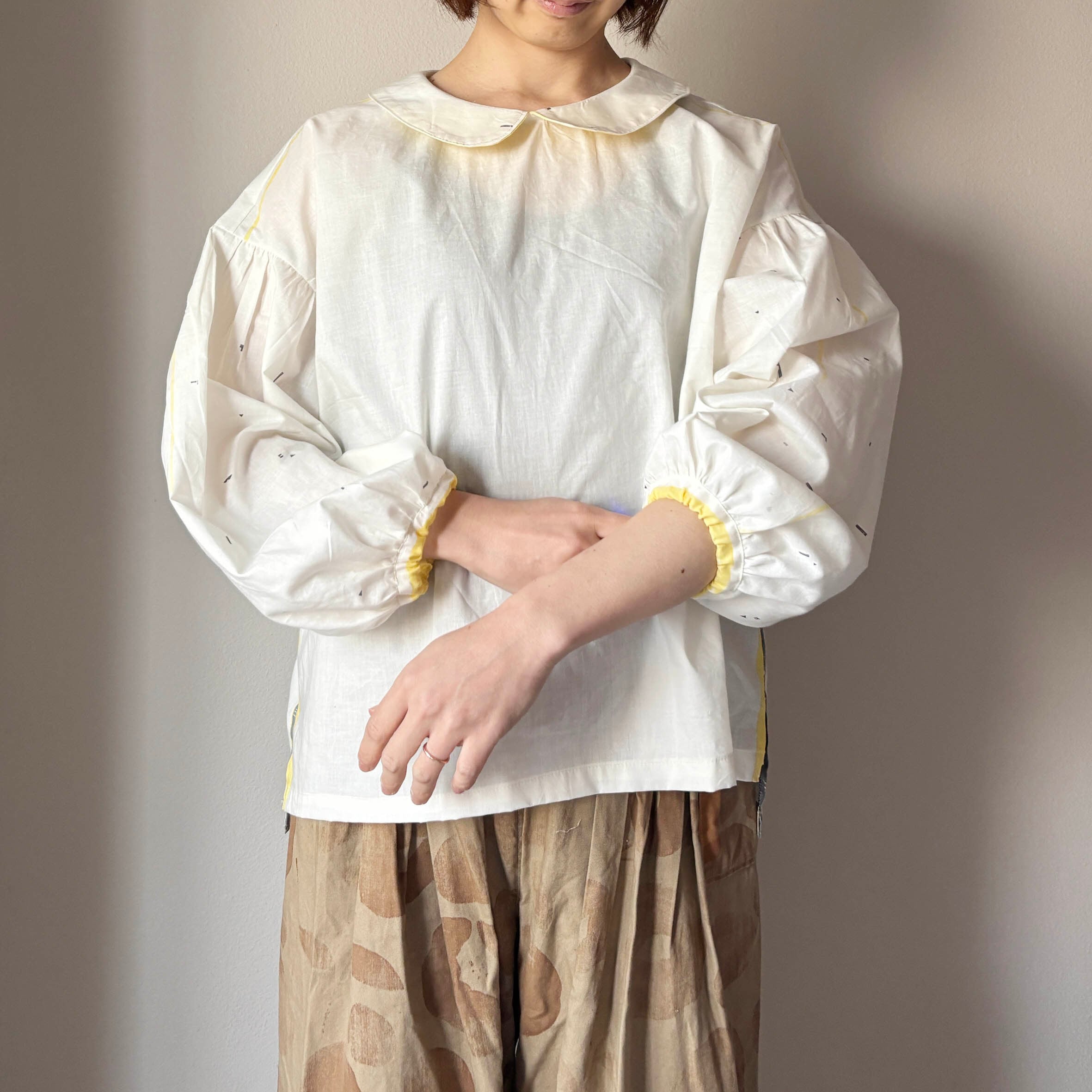 昨年の3月のお便りのギャザー衿ブラウスを丸衿に、