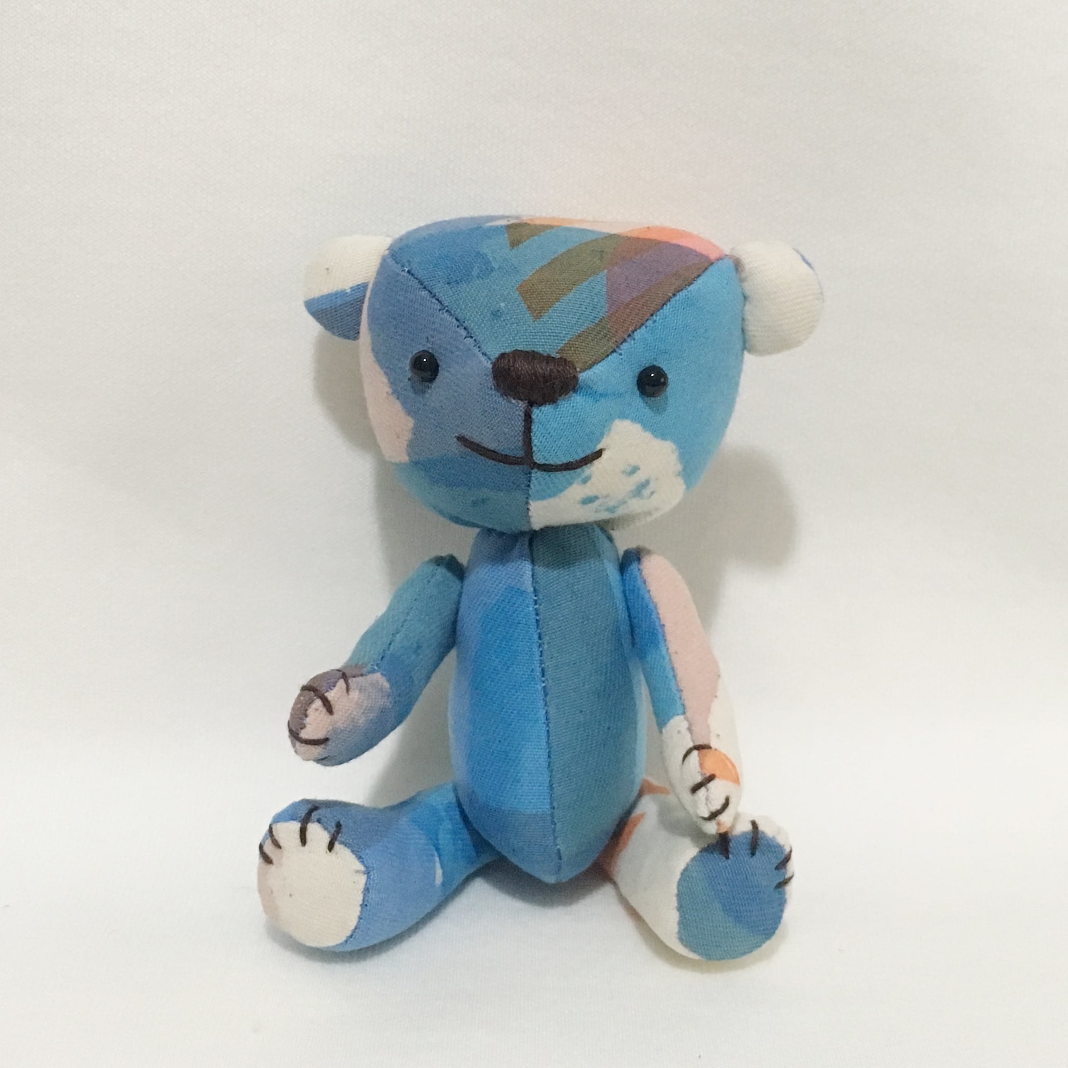 ランダムに入った柄が見る角度によってクマの表情に変化をつけています。