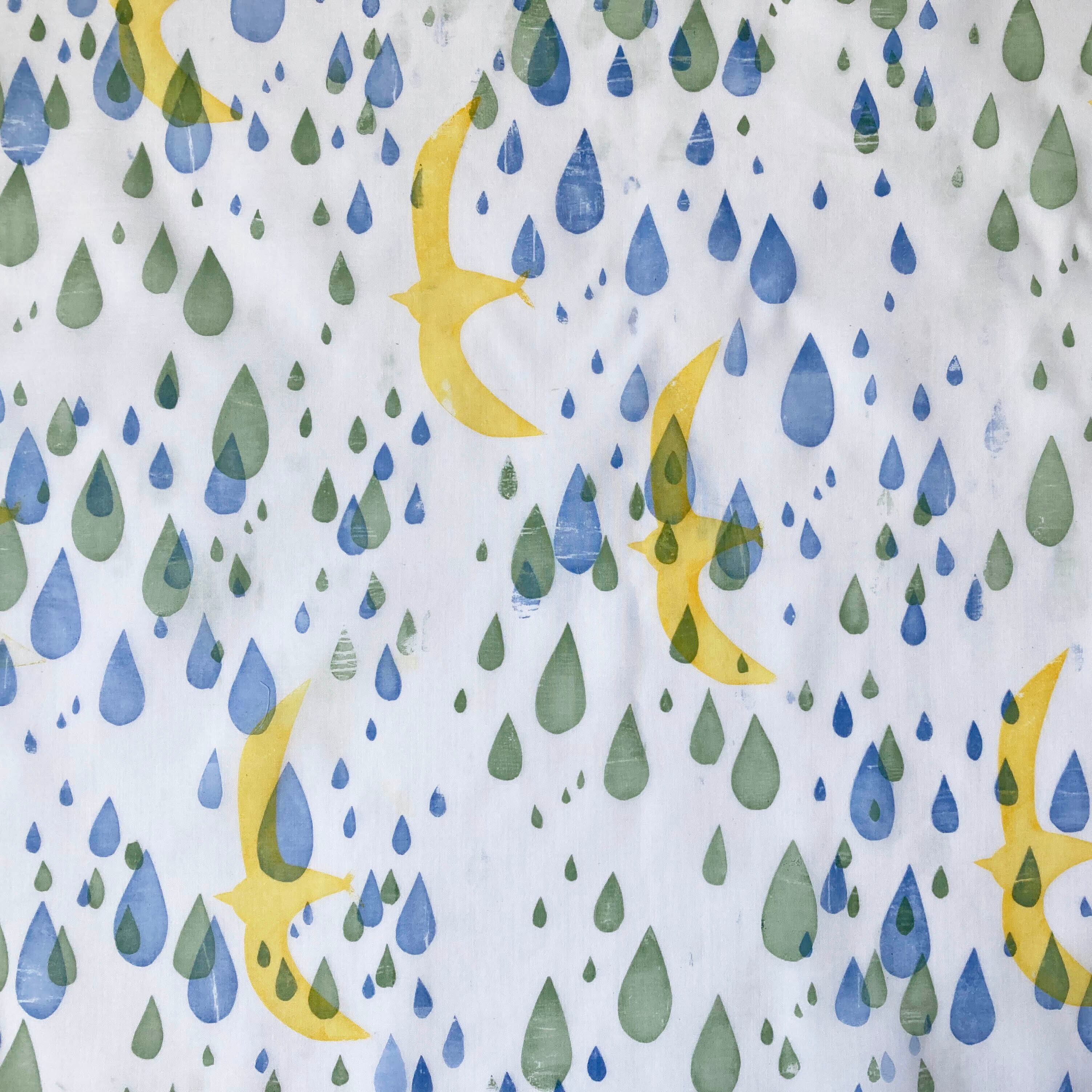 雨の中を飛ぶ鳥のハンカチです。