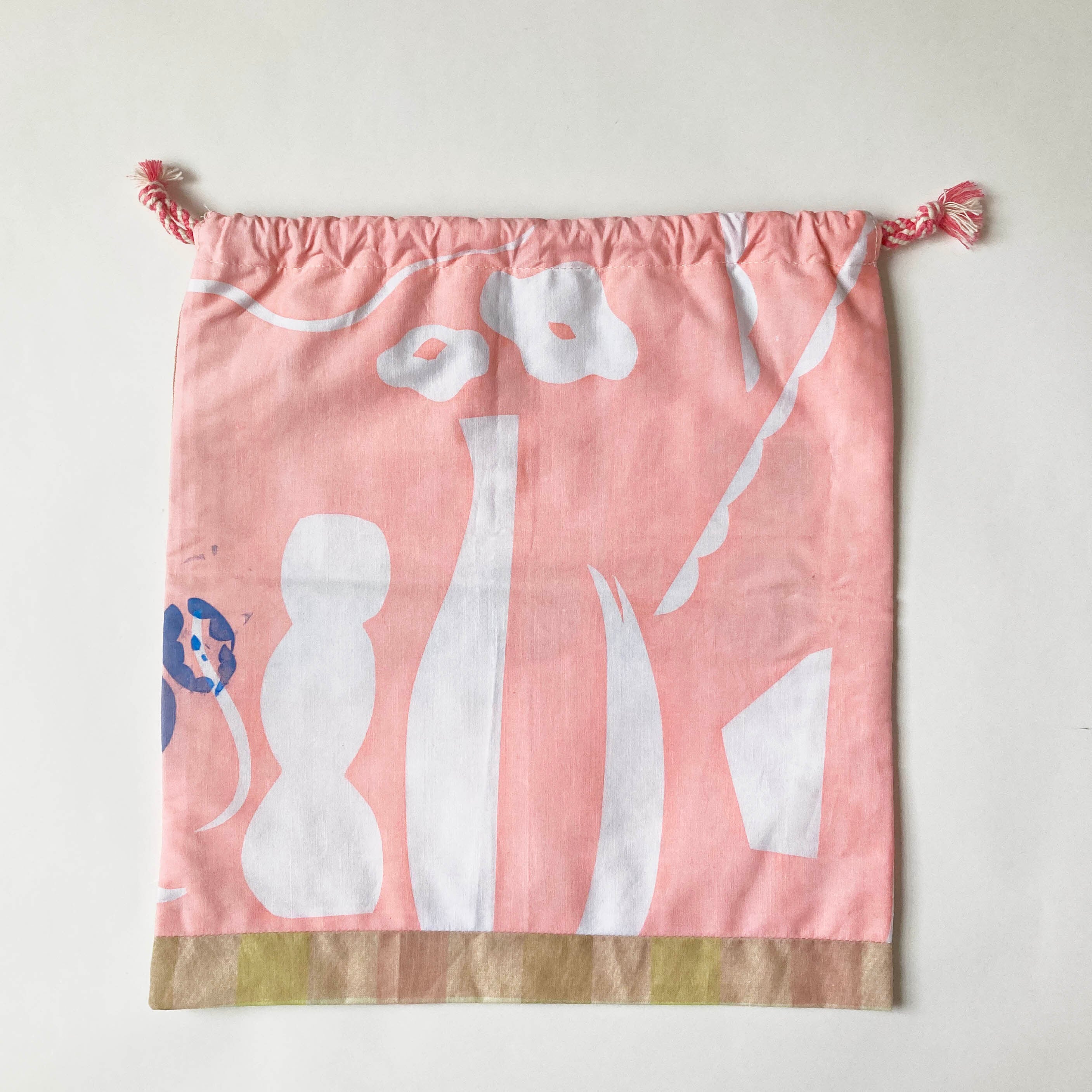 裏地はピンクの山をプリントした生地を使っています。(リバーシブルではありません)