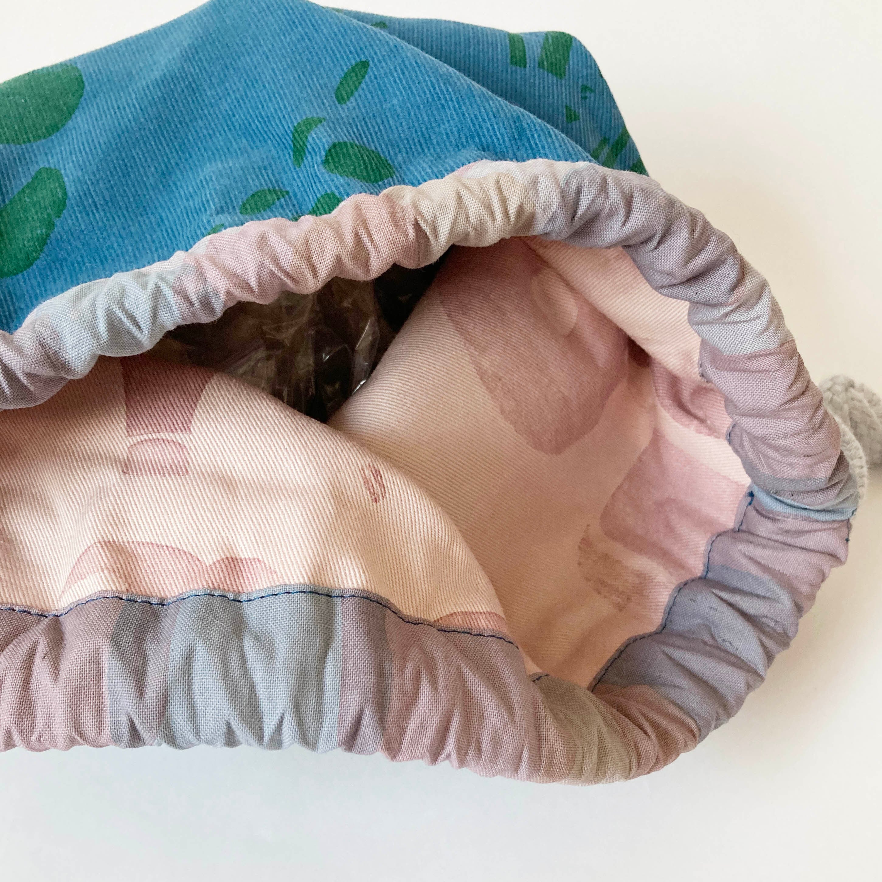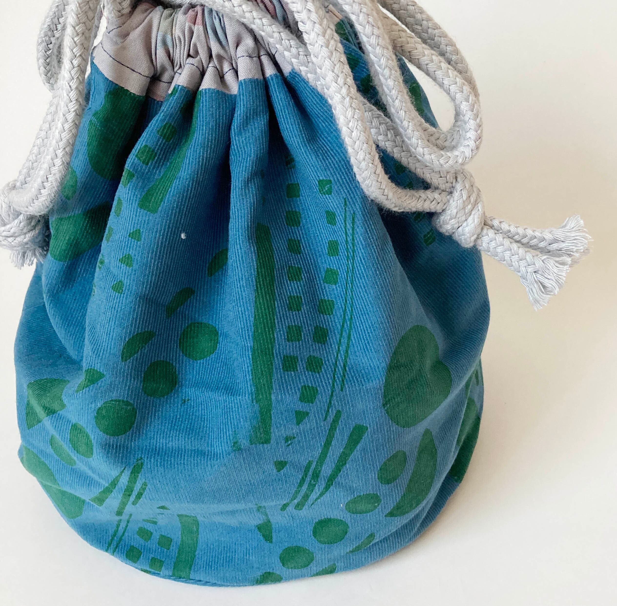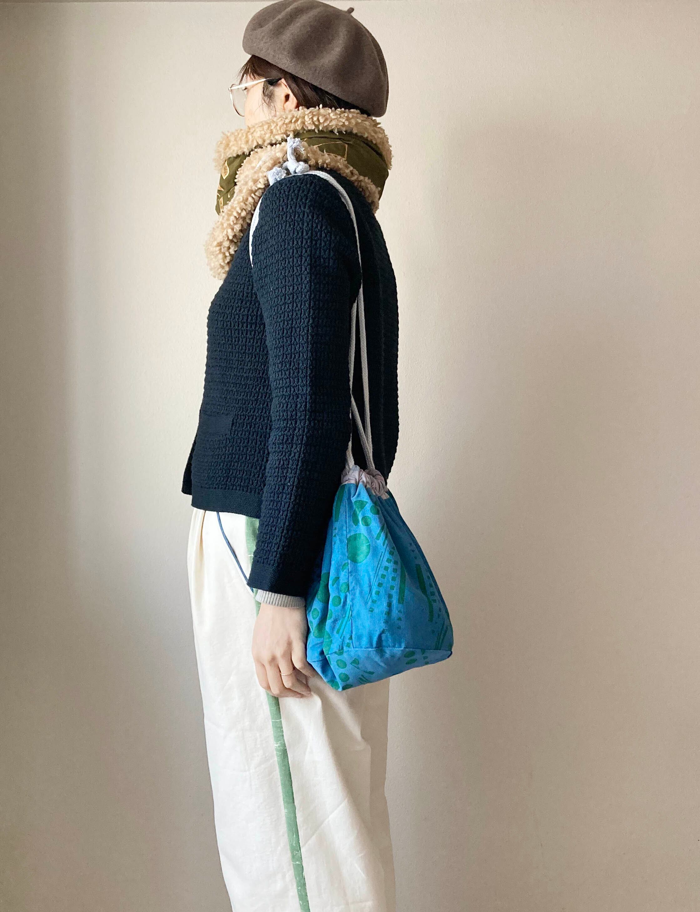 冬の生地だけれど、鮮やかな青と緑が元気をくれます。